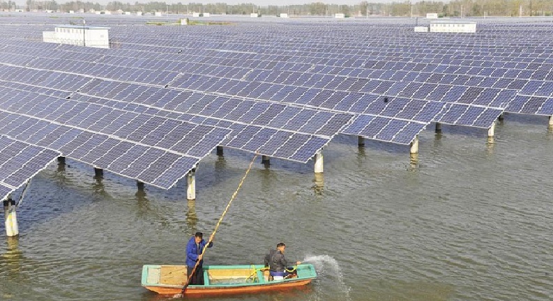 +"漁光互補(bǔ)"式光伏電站通過(guò)把光伏電站建設(shè)在漁業(yè)養(yǎng)殖的水面上,集中并網(wǎng),達(dá)到“上可發(fā)電,下可養(yǎng)魚(yú)”的新型光伏模式,從而大大節(jié)省了空間資源。采用預(yù)應(yīng)力混凝土管樁打入水底,樁頂安裝支架和組件。漂浮電站建在水深超過(guò)10米的水面,采用浮筒設(shè)計(jì)。